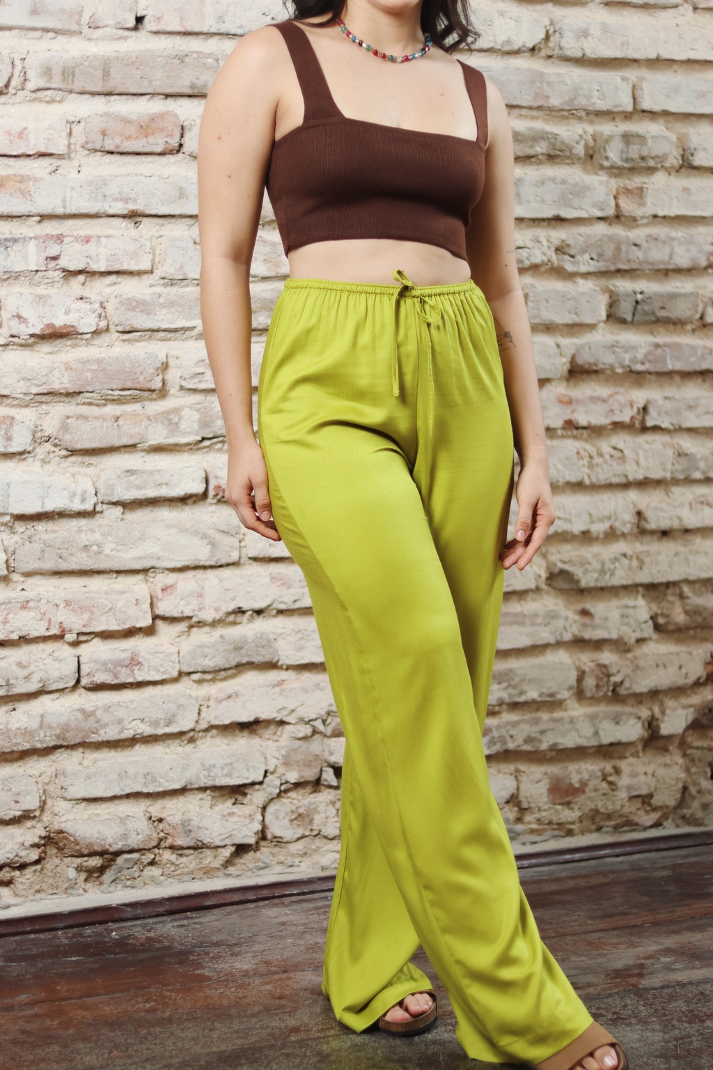 Feita em um tecido de viscose premium levemente acetinada e de toque macio, a calça Gal pistache possui modelagem reta, solta e com pernas e bainha levemente alargadas. O cós possui elástico leve em toda cintura e um cadarço para amarrar, permitindo maior conforto e regulagem. O acabamento da calça gal é feito em costura francesa trazendo ainda mais comodidade no vestir. Encontre o seu tamanho usando o provador virtual